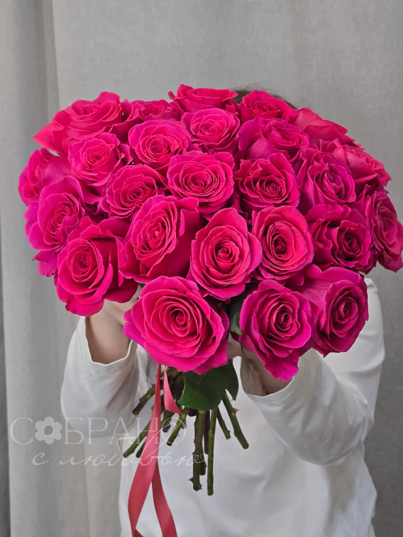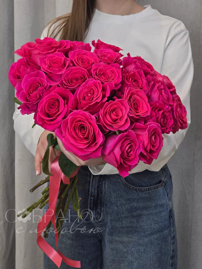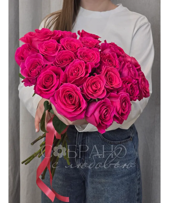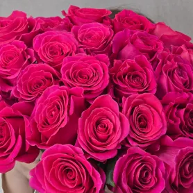 Великолепный букет из ярко-розовых роз это воплощение страсти и нежности. Роскошные бутоны, словно драгоценные камни, завораживают своим насыщенным оттенком и глубиной. Этот яркий акцент наполнит любое событие незабываемыми эмоциями и подарит ощущение праздника.
