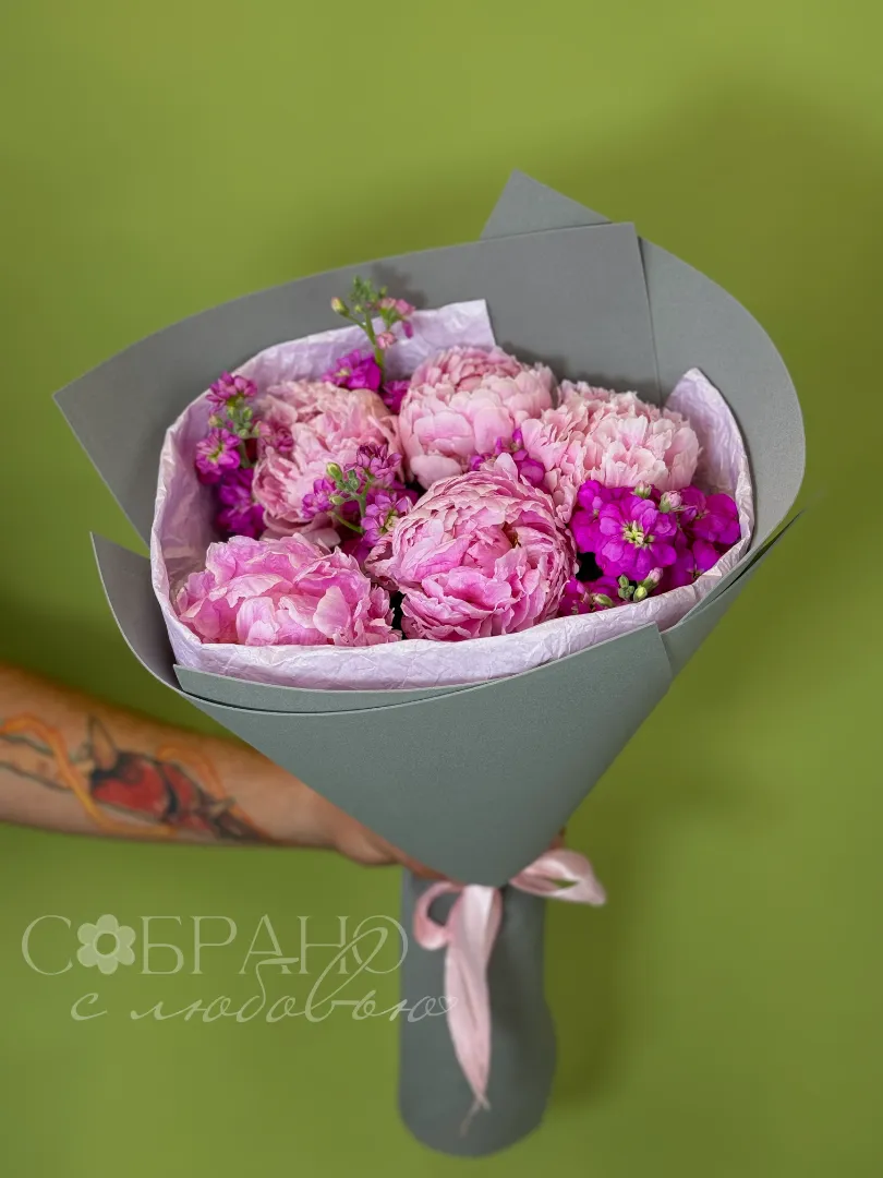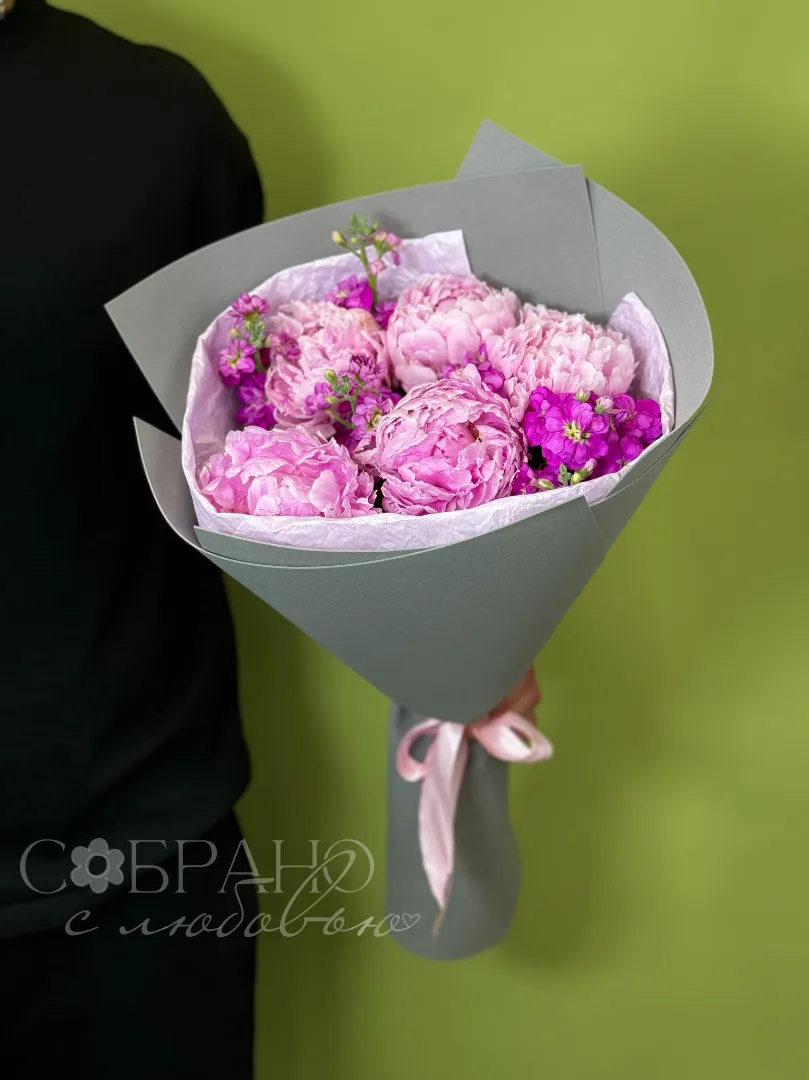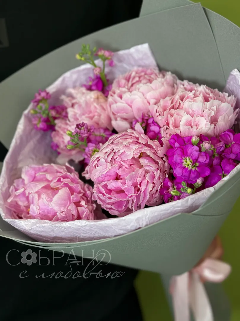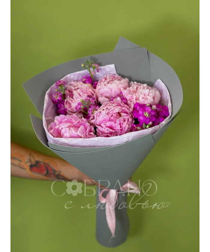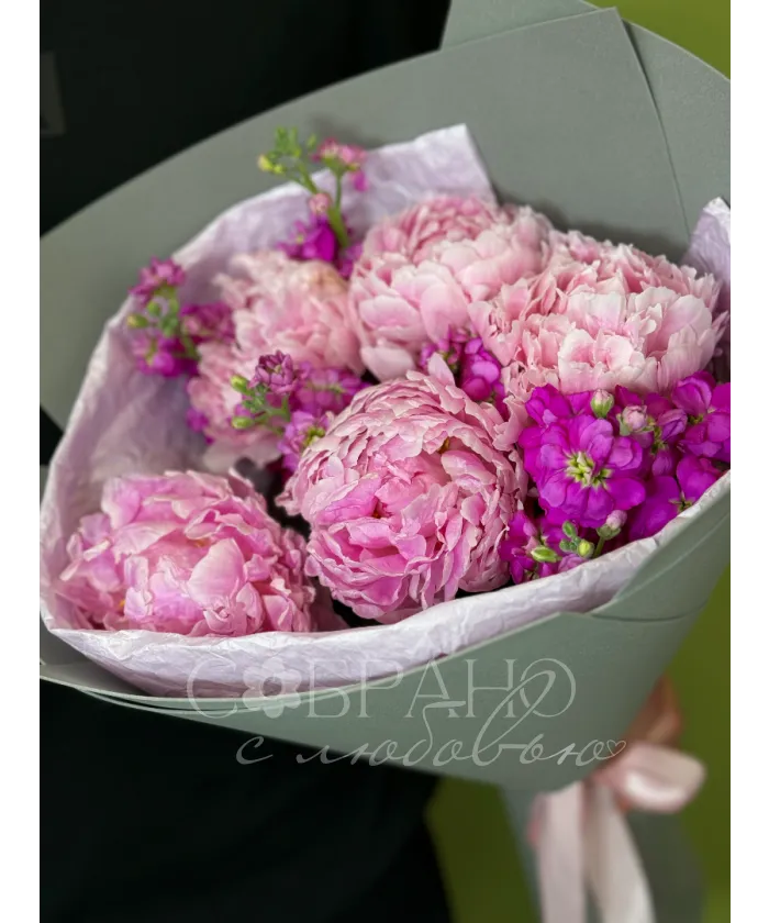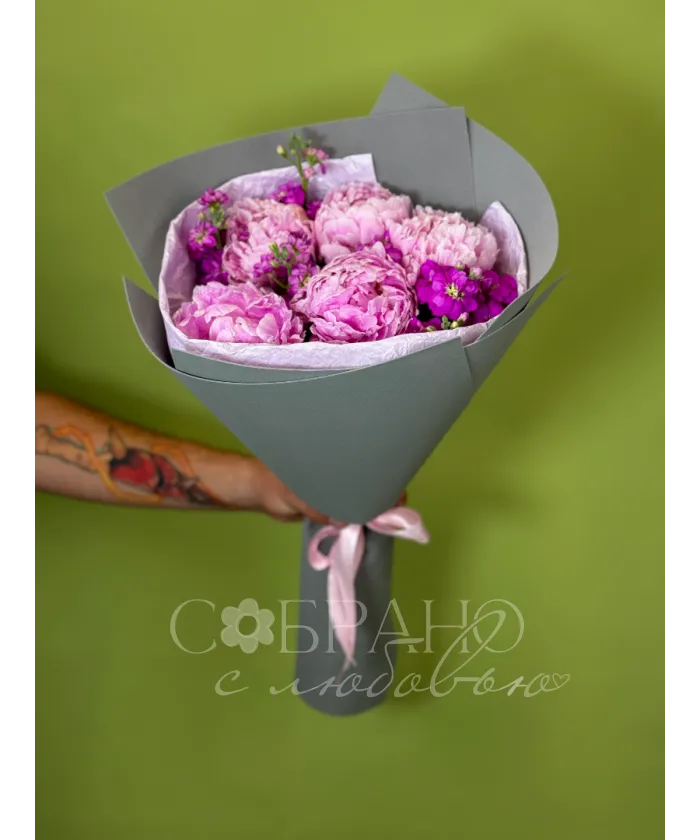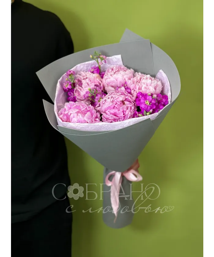 Букет с пионами и маттиолой