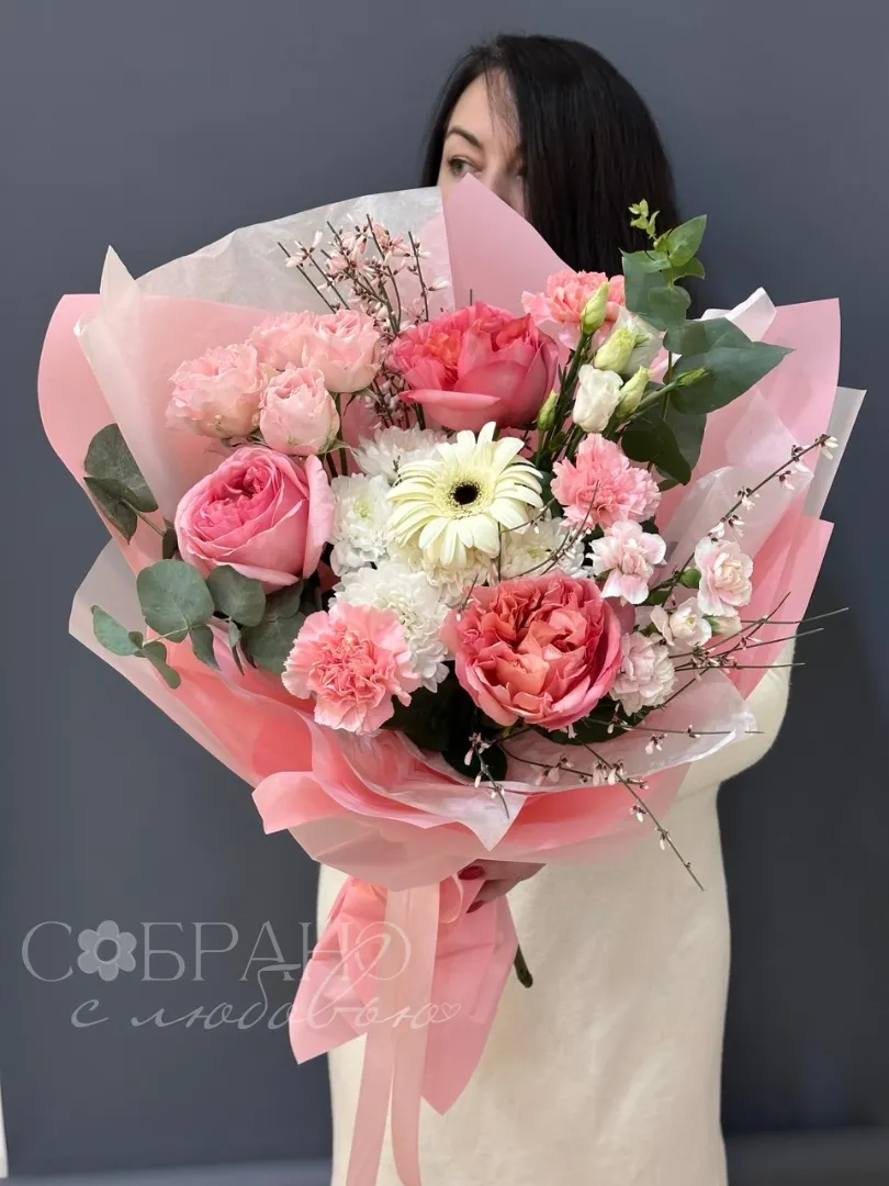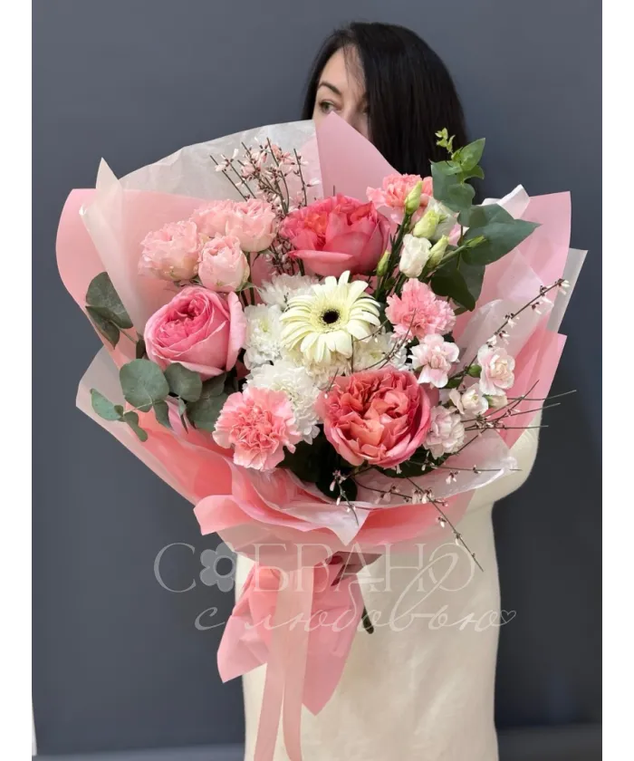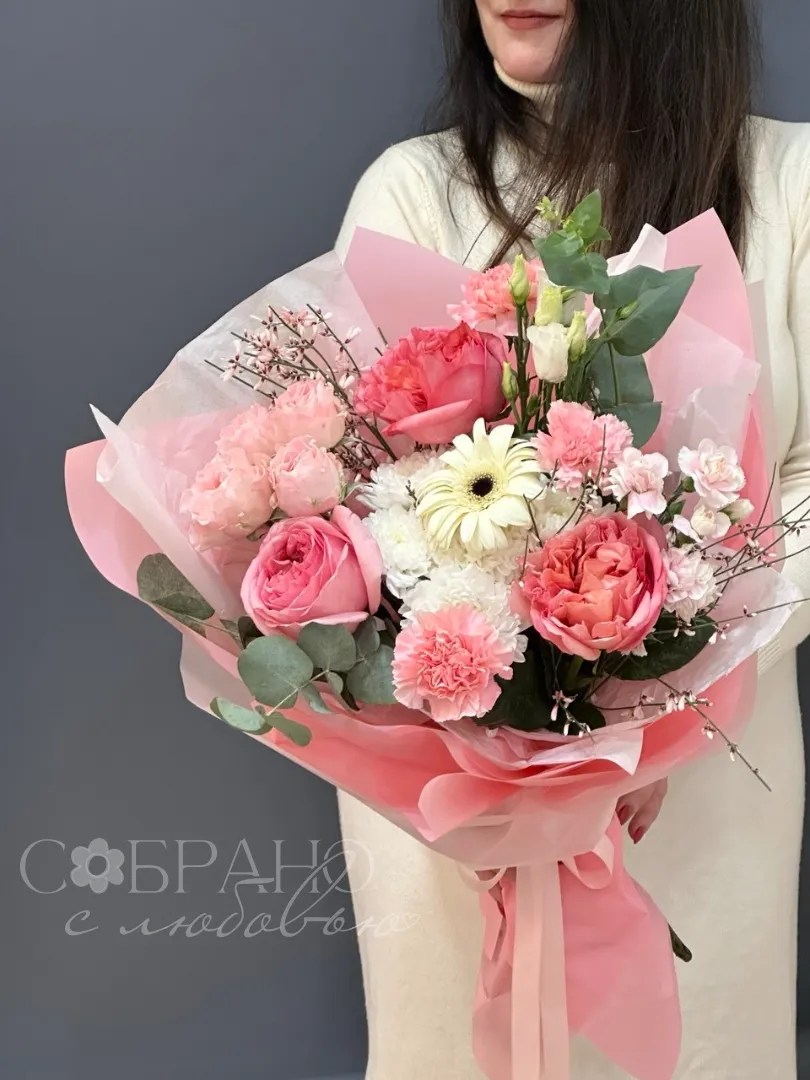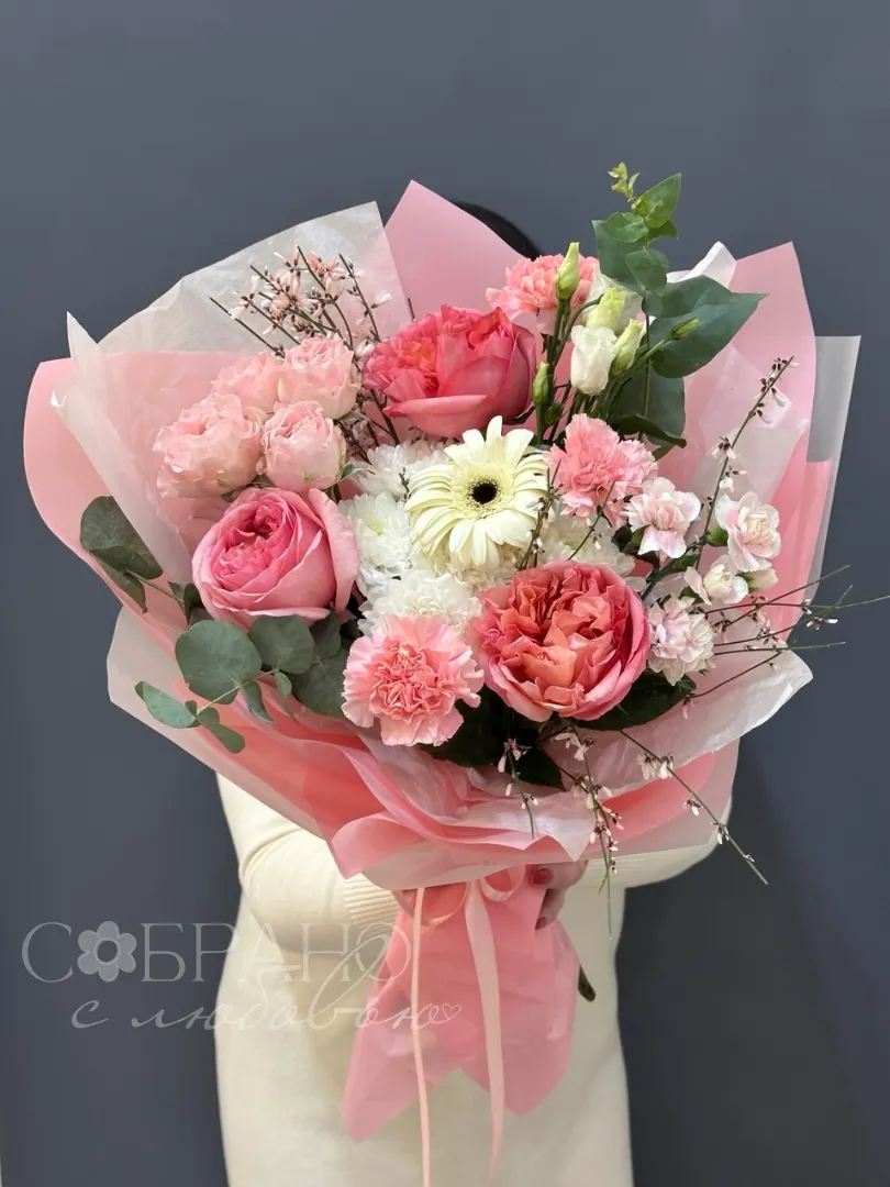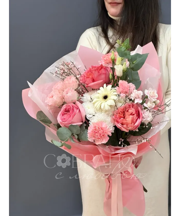 Сборный букет «Розовое облако» — это нежное воплощение мечты, сотканное из самых изысканных цветов.