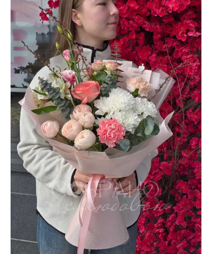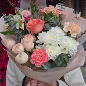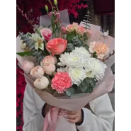 На этот букет можно сказать, что он нежный и романтичный. Он отлично подходит для подарка близкому человеку.
