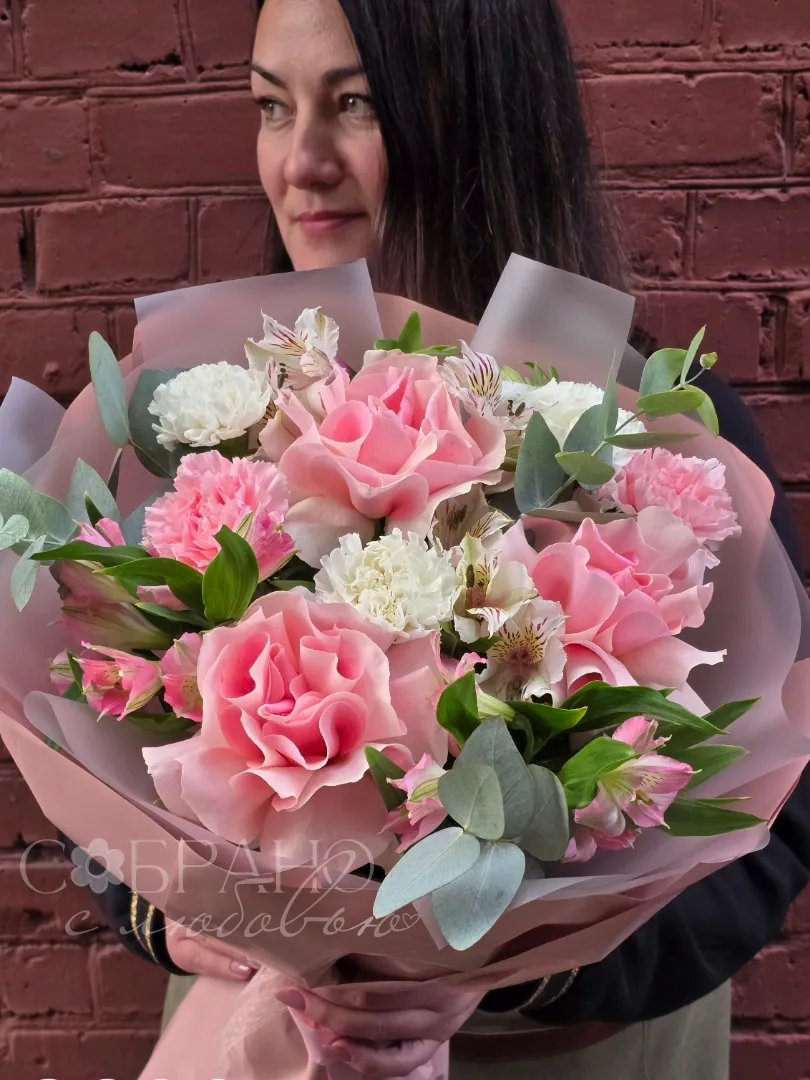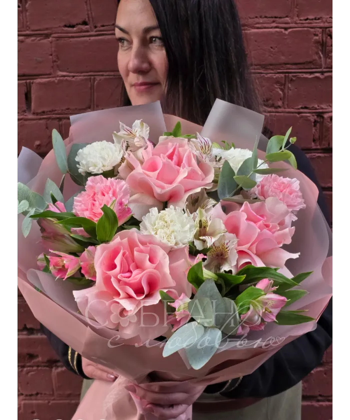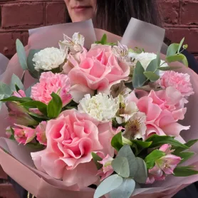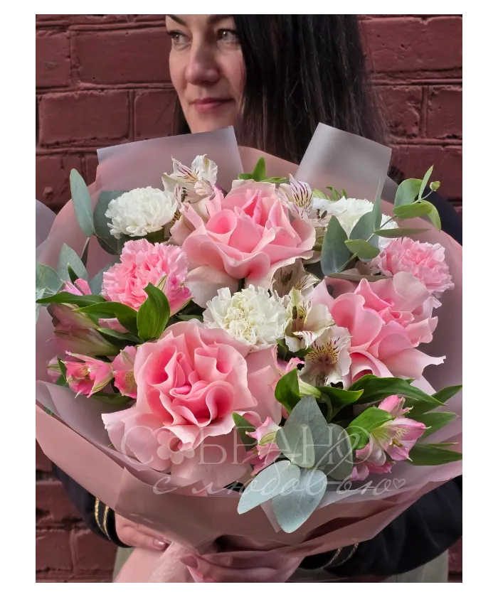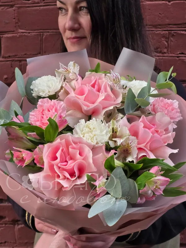 Нежный и изысканный букет, словно облако из розовых роз, альстромерий и гвоздик. Он создан, чтобы подарить восторг и окутать получателя атмосферой весеннего рассвета. Этот букет станет воплощением вашей нежности и внимания.
