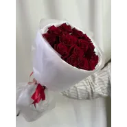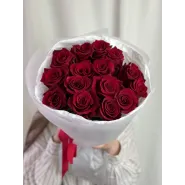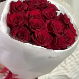 Этот букет из темно-красных роз воплощение страсти и элегантности. Идеально подобранные цветы, бережно упакованные в белоснежную бумагу, создают роскошный, но при этом сдержанный образ. Этот букет станет незабываемым подарком, выражающим самые глубокие чувства.