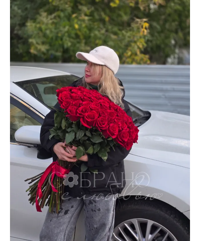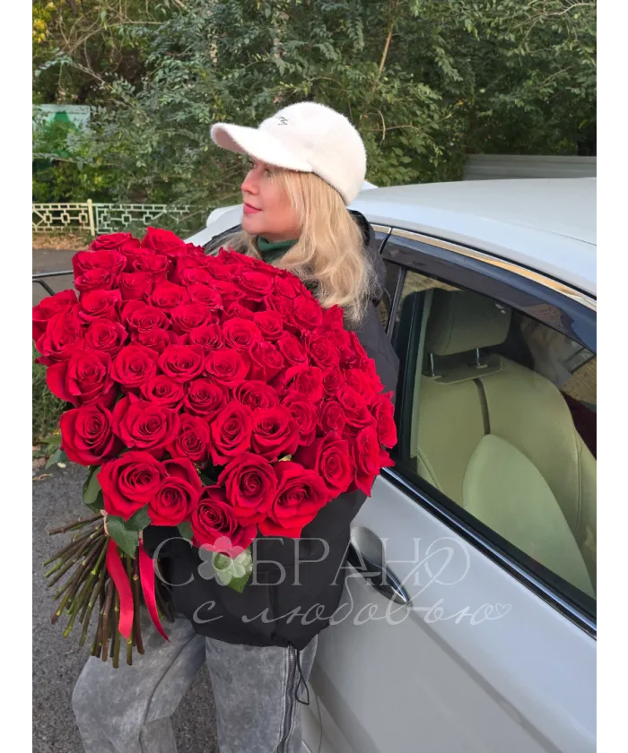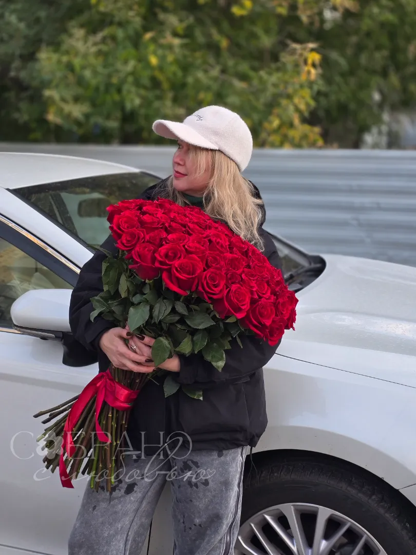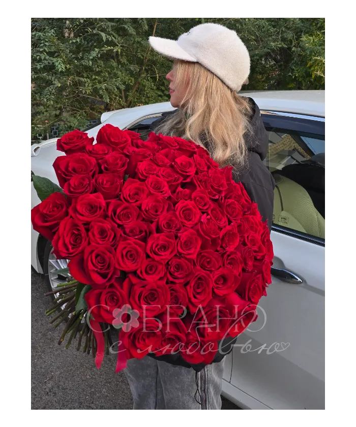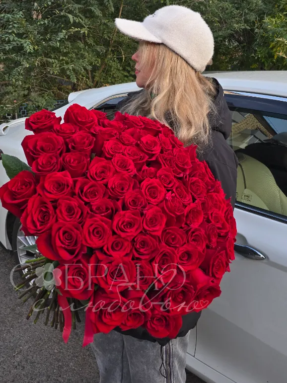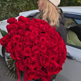 Этот роскошный букет из алых роз воплощение страсти и глубоких чувств. Подарите море эмоций и незабываемые моменты с этими благородными цветами. Идеальный выбор для выражения вашей любви.