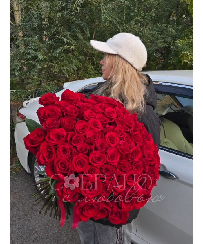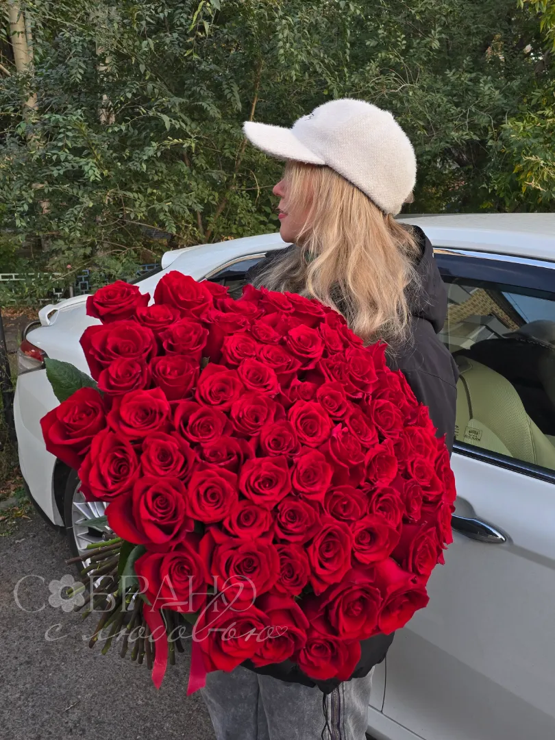 Букет из 51ой премиальной розы «Алое Сердце»